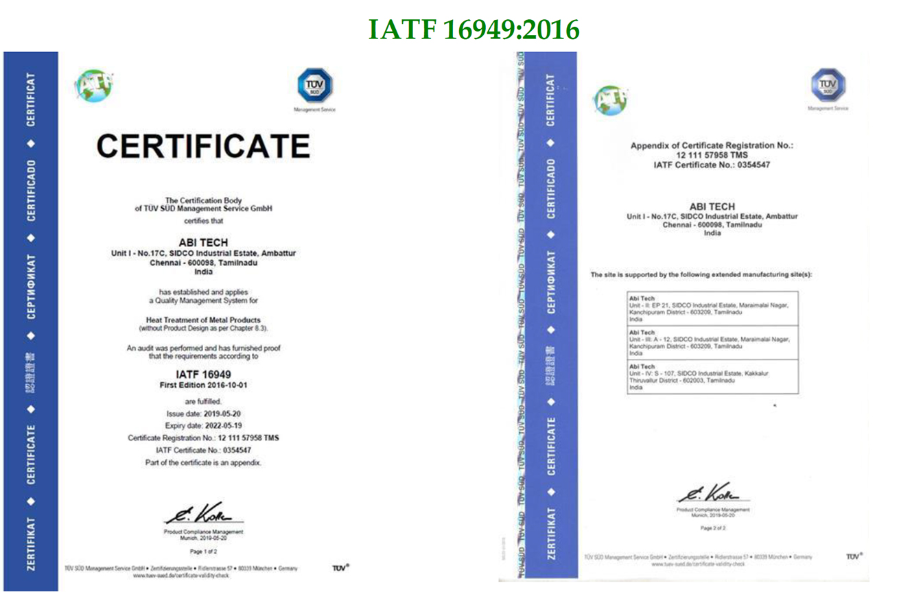 • To meet this ABI Tech will follow ASM, DIN, IS, CQI 9 & Customer's standards.